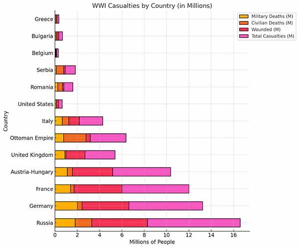 Der Zweite Weltkrieg war der tödlichste Konflikt der Menschheitsgeschichte und forderte Schätzungen zufolge weltweit zwischen 16 und 20 Millionen Menschenleben. Diese erschütternde Zahl umfasst sowohl Militärangehörige als auch Zivilisten: Etwa 10 Millionen Soldaten starben auf dem Schlachtfeld, während weitere 6 bis 10 Millionen Zivilistinnen und Zivilisten durch Hunger, Krankheiten, Massenbombardierungen, Zwangsarbeit und Gräueltaten in besetzten Gebieten ums Leben kamen. Das Leid reichte jedoch weit über die Zahl der Toten hinaus. Rund 21 Millionen Menschen wurden im Kampf verwundet, viele davon mit lebenslangen körperlichen und seelischen Folgen. Zudem galten etwa 7 Millionen Menschen als vermisst oder blieben spurlos verschwunden – ihr Schicksal ist bis heute oft ungeklärt. Diese Zahlen sind mehr als nur Statistik – sie stehen für zerstörte Familien, ausgelöschte Gemeinschaften und Generationen, deren Leben für immer verändert wurde.